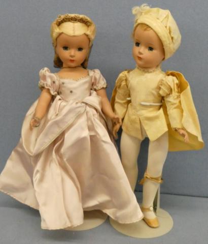 1950's Madame Alexander Hard Plastic Cinderella and Prince Charming 1 glass slipper is broken but can still be worn (Gown originally blue. It has turned to a lovely pinky color) Price: $400.00Condition: MintStatus: Sold Additional Images
