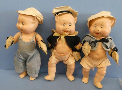 Madame Alexander Disney's Three Little Pigs Madame Alexander Walt Disney's Three Little Pigs 1930s ~missing shoes, hang tag ~some soiling on outfits, but generally good condition considering their age Price: $1000.00Status: Available Additional Images