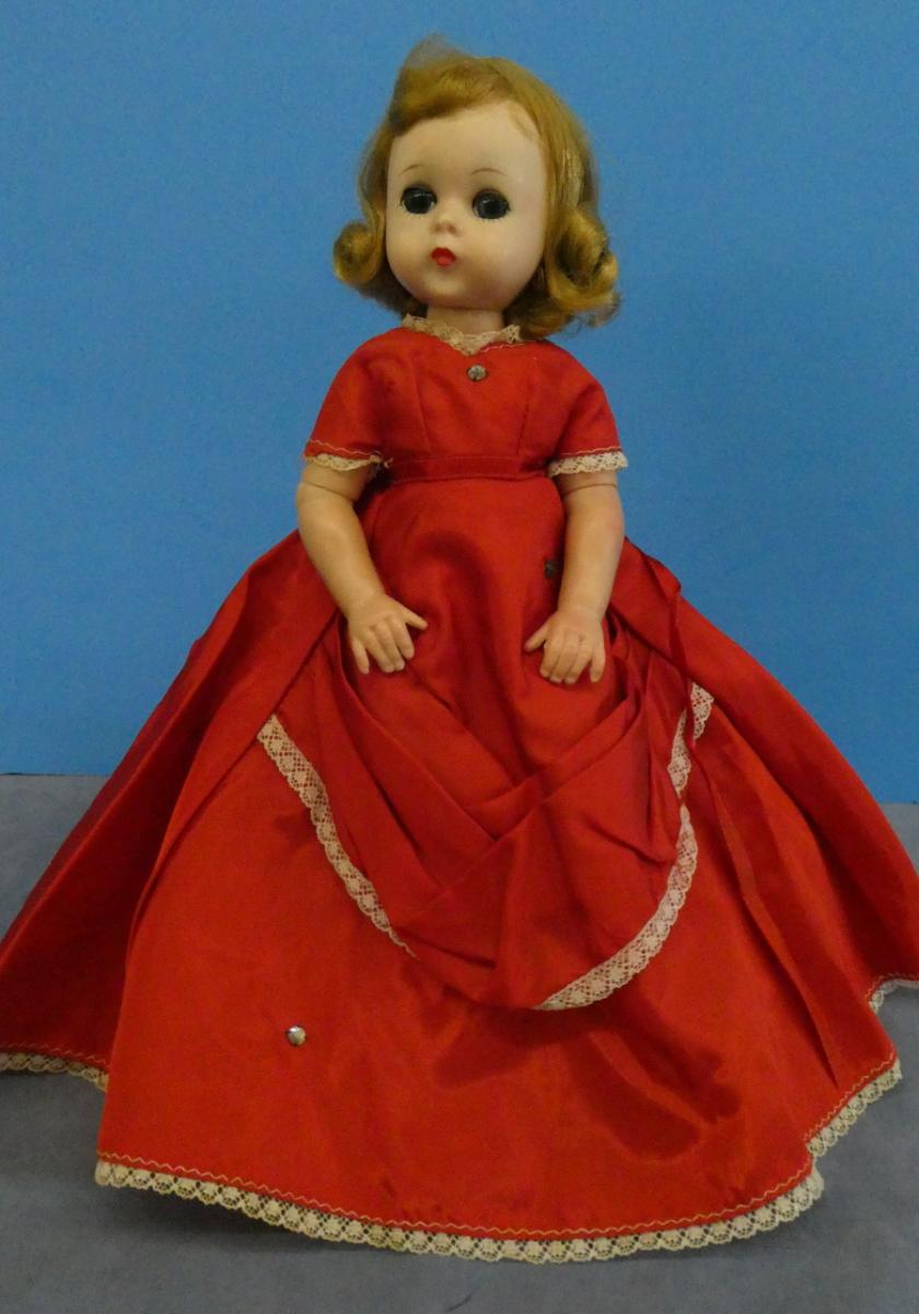 Madame Alexander Lissy in Red Gown Gown Mom-made? Panties, nylons Original wig Body has stained from dress Price: $50.00Condition: OtherStatus: Available Additional Images