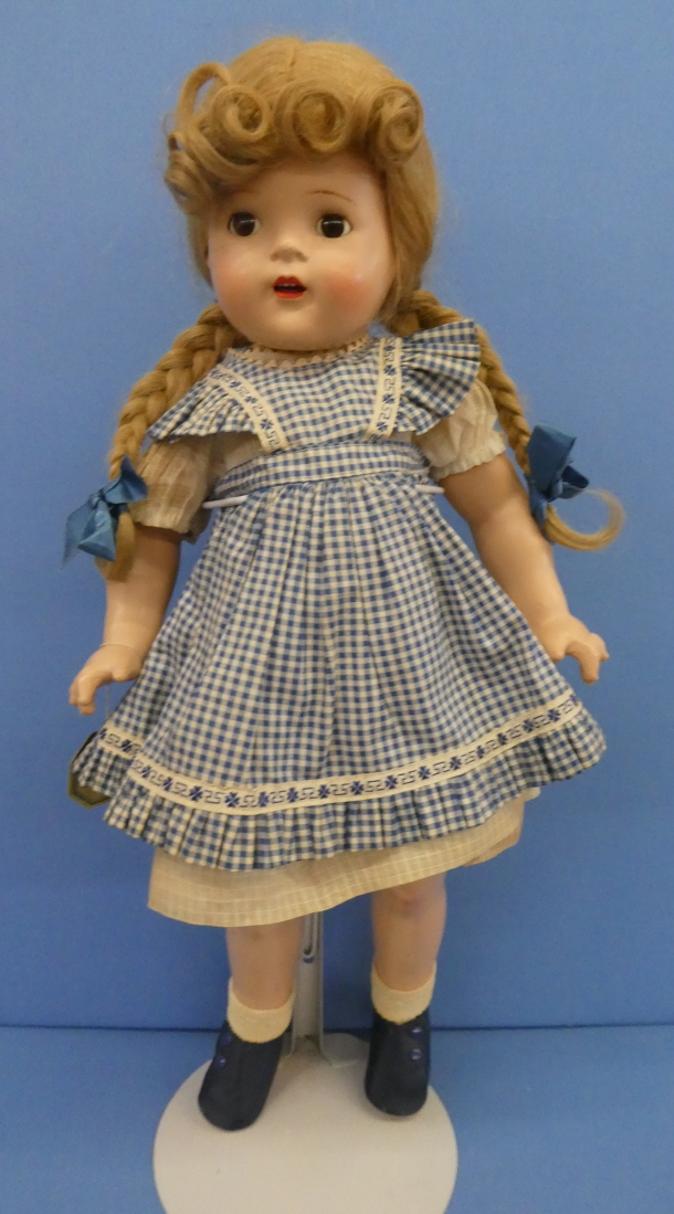 ++MAMC20 Madame Alexander McGuffey Anna 1937-1942 Composition, all original outfit with hang tag Price: $125.00Status: Available Additional Images