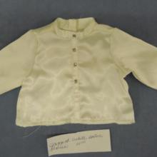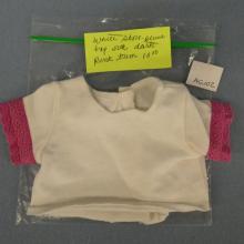 **AG246 American Girl White Satin Blouse Tagged White Satin Blouse with rhinestone buttons Status: AvailableCondition: Lightly Played WithPrice: $10.00