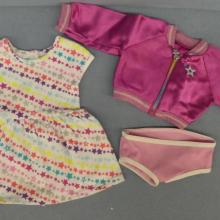 ++AG134 American Girl Pink Ballet Set Leotard with attached skirt, tights and ballet slippers Status: AvailablePrice: $10.00