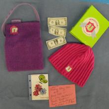 **AG57 American Girl Every Day Accessories Knit Hat, 3-$1.00 bills, Book Binder, Book with Butterfly Print Status: AvailablePrice: $20.00