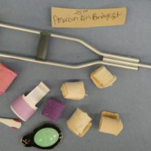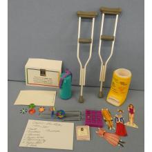 ++AGT39 American Girl of Today Apres' Ski Gear 1997, 2001 Modified, Retired 2002 Crutches, cast, water bottle, paper dolls with envelope (uncut), unpunched disks for spinning toy, spinning toy, Tic-Tac-Toe Game (Missing 8-Ball Status: AvailablePrice: $70.00