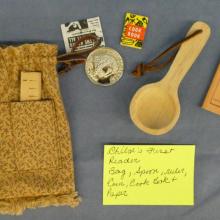**AGT55 American Girl Gardening Accessory I 2002-2004 Canvas bag, trowel, rake, 4 seed packs, and misting bottle Status: AvailablePrice: $20.00